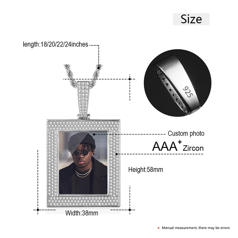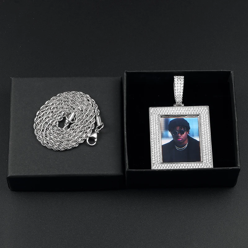BEST QUALITY Square Custom Picture Memory Solid Medallions Pendant Necklace For Women Men Hip Hop Crystal Person