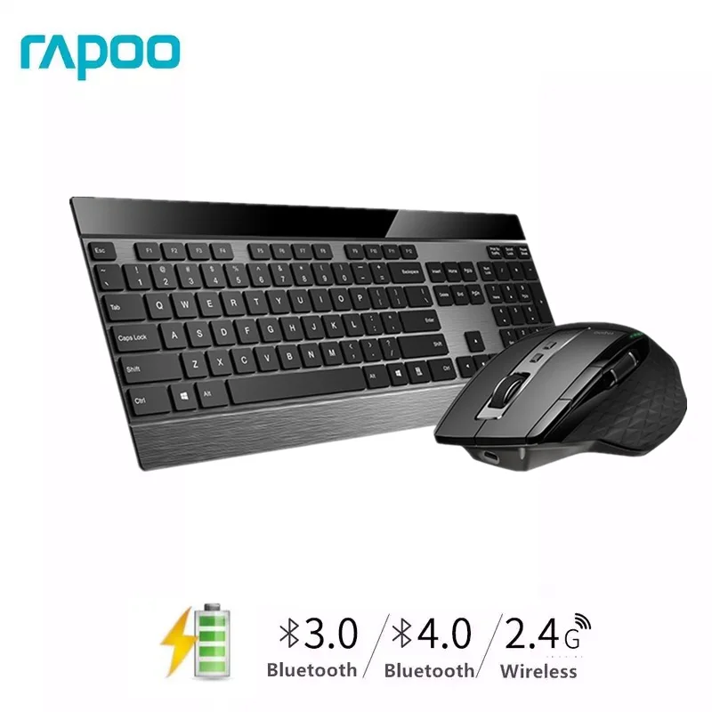 HIGH QUALITY Rapoo Multi-mode Wireless Slim Metal Keyboard & Rechargeable Laser Mouse Combo Bluetooth 3.0/4.0 &