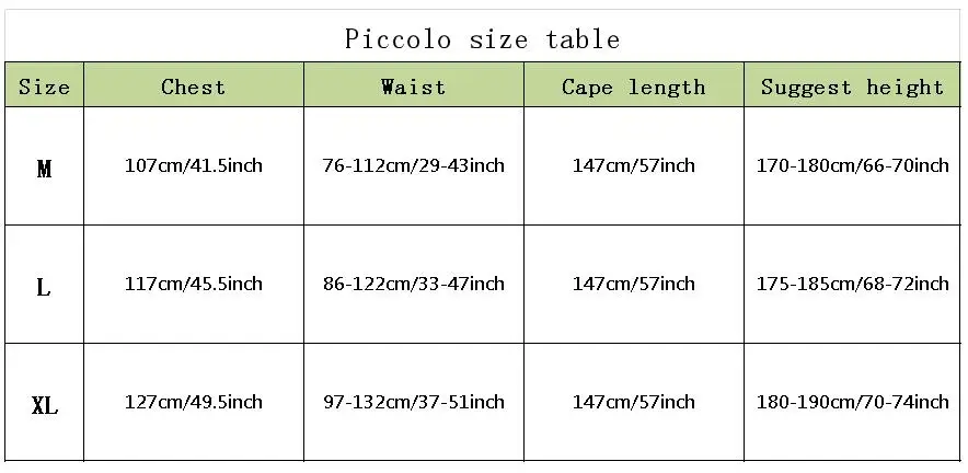 Review Halloween Mens Dragon balls Piccolo costume with cape Bad man Piccolo Jr. role play clothings full