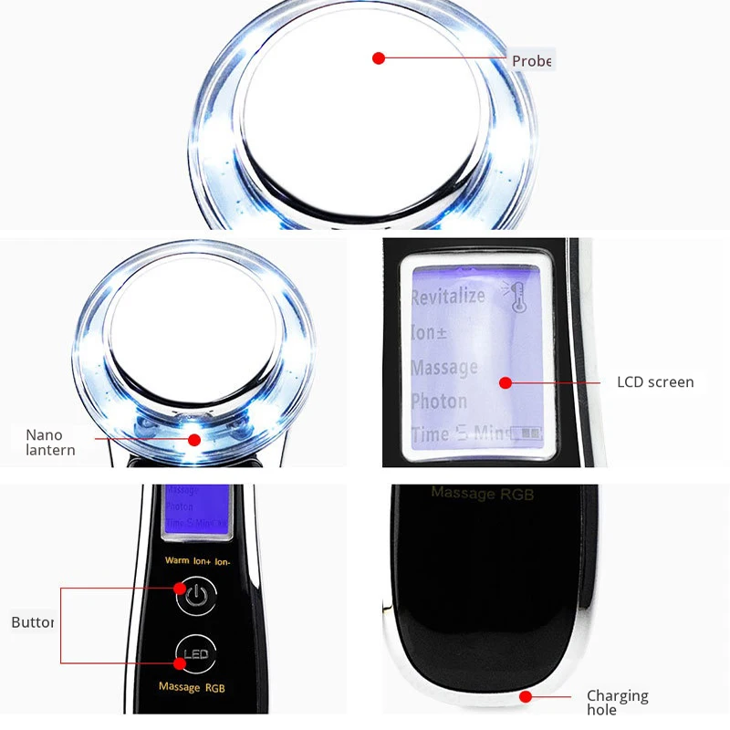 LED Radio Frequency Facial Hydrating Beauty Instrument Skin Care Tools Blackhead Acne Reduce Skin T